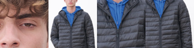 Recycled polyester outer. Recycled polyester lining. Polyester down padding. Showerproof. Lightweight. Grown on padded hood. Full length nylon zip with metal zip pull. Two front zip pockets. Elastic bound cuffs and hem. Tag free.