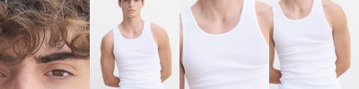 100% ringspun combed cotton. Soft touch. 2x1 ribbed. Soft jersey bound neckline and armholes. Side seams. Overlock hem. Tag free.