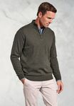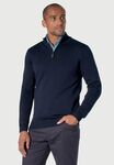 50% cotton, 50% Merino wool. 1/4 zip jumper, ribbed neck, cuff and hem, double contrast inner neck design detail.