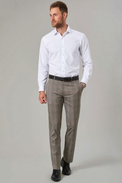 64% Polyester, 34% Viscose, 2% Lycra Slim fit, flat front, 2 side pockets, 1 rear pocket. Half hem width at waist size 34" = 19cm