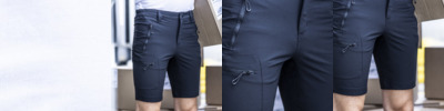 70% polyester/30% recycled polyester. Woven stretch fabric.Water repellent finish.Part elasticated waistband with belt loops.Zip fly with shank button over.Two large zip side pockets.Left rear zip pocket.Zip pocket on right thigh.