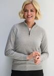 60% Cotton, 40% Acrylic 12 gauge knit. 1/4 zip jumper, faux leather zip pull, ribbed neck, cuff and hem, contrast inner neck design detail.