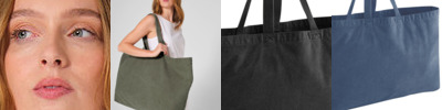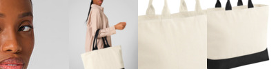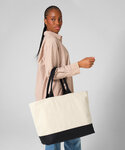 Durable canvas construction. Soft webbing handles for maximum comfort. Faux gusset detailing. Can be carried by hand or over the shoulder. CutAway label for ease of rebranding.