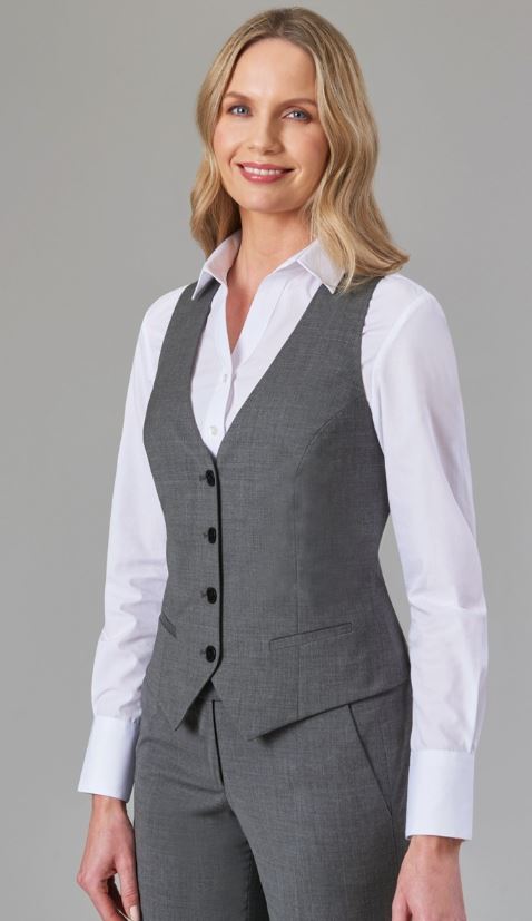 54% Polyester, 44% Wool, 2% LYCRA® Elastane. 4 button front, 2 welt pockets, cloth backed