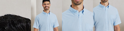 Men's signature Oxford short sleeve Easycare shirt with wrinkle free finish for a smart and professional appearance. Button down collar. Left breast open mitred pocket. Short sleeves. Side back pleats. Cotton rich Oxford fabric. Semi fitted styling. Easy