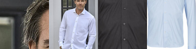 Four-way stretch. Wide spread collar. Shaped fit. Modern-shaped cuffs. Back yoke. Easycare. Ascolite button wrapping.