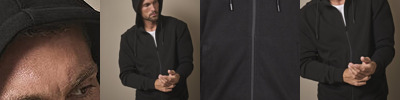 Full-zip. Two-layered hood. Two open front pockets. Ribs with elastane. Herringbone neck tape. Double pre-shrunk. Silicone treatment. SBS zip.