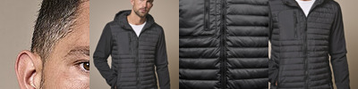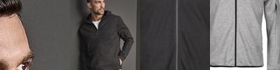 Tailored fit. Two hidden front pockets with zips. Inner pockets. Elastic banding at bottom hem. Elastic side panels and sleeves. SBS zips. Prepared for embroidery. Fixed hood.