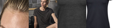 Crew neck. Ribs with elastane. Herringbone neck tape. Double pre-shrunk. Silicone treatment.