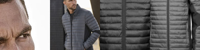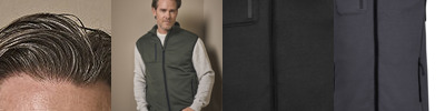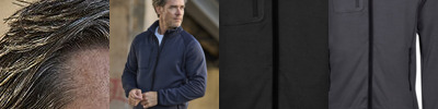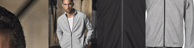Tailored fit. Two hidden front pockets with zips. Inner pockets. Elastic banding at bottom hem. Elastic side panels. SBS zips. Prepared for embroidery. Stand-up collar.