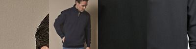 Half-zip. SBS zip. Ribs with elastane. Herringbone neck tape. Double pre-shrunk. Silicone treatment.