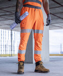Lightweight four-way stretch fabric with durable water-repellent finish. Oxford Stretch reinforcement fabric knee panels. Certified to EN ISO 20471:2013 A1:2016 Class 2. Orange colourway is also certified to RIS-3279-TOM. Durable heat-applied reflective tape. Crotch gusset for greater movement. Two front pockets. Two lower cargo pockets. One back patch pocket. Elasticated waistband with drawcord. Elasticated cuffs.