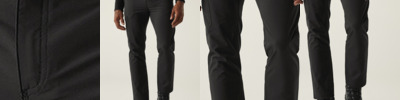 70% polyester/30% recycled polyester. Woven stretch fabric.Water repellent finish.Part elasticated waistband with belt loops.Zip fly with shank button over.Two side zip pockets.Left rear zip pocket.Zip pocket on right thigh.Ripstop stretch fabric on seat and knees.