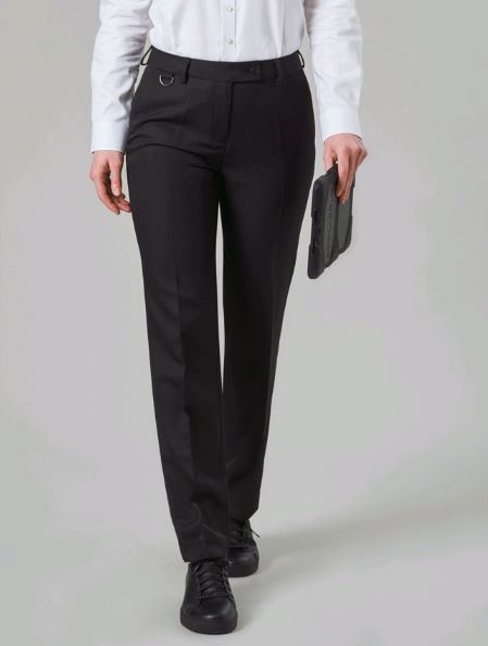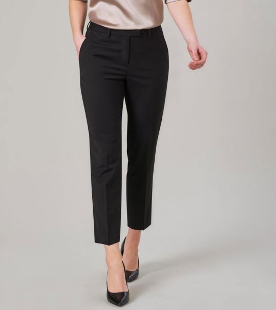 54% Polyester, 44% Wool, 2% LYCRA® Elastane. Parallel leg , single button front fastening, 1 waistband pocket Half hem width at size 12R = 22cm