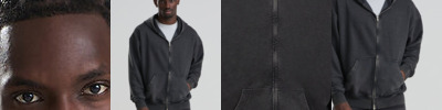 Oversized fit. Locker patch, for easy rebranding. Double-layer hood. Double-end silver zip. Kangaroo pouch pocket. No drawcords. Ribbed cuffs and hem. French terry inner. Size label only.