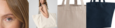 Large capacity. Can be carried by hand or over the shoulder. CutAway label for ease of rebranding. Contains 100% GOTS-certified organic cotton, certified by Control Union CU811033.