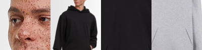 Oversized fit. Hood. Customisable kangaroo pocket. Ribbed cuffs and hem. Ends just above the hip. Half-moon at the neck.