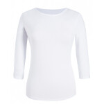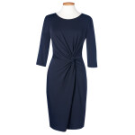 3/4 sleeve, round neck, flattering fit with waistline detail, stretch lining