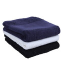 Bath towel with 12cm herringbone border for easy decoration. Hanging loop in centre of top edge.