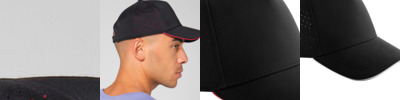 Laser-cut perforation to rear panels with colour lining. Moisture-wicking, ultra-soft sweatband provides all-day comfort. Five-panel design. Structured front panels. Pre-curved peak. Contrasting colour sandwich peak. TreadSnap size adjuster. Tear-away label for ease of rebranding. Contains 100% GRS-certified recycled polyester, certified by Control Union CU811033.