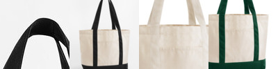 Durable canvas construction. Soft webbing handles for maximum comfort. Faux gusset detailing. Can be carried by hand or over the shoulder. CutAway label for ease of rebranding.