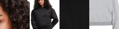 Oversized fit. Hood. Customisable kangaroo pocket. Ribbed cuffs and hem. Ends just above the hip. Half-moon at the neck.