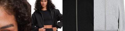 Oversized fit. Full metal zip. Hood. Divisible, customisable kangaroo pocket. Ribbed cuffs and hem. Half-moon at the neck.
