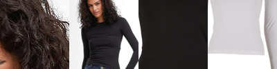 Slim fit. Body-hugging. Ends just above the hip. Crew neck. Stretch Jersey.